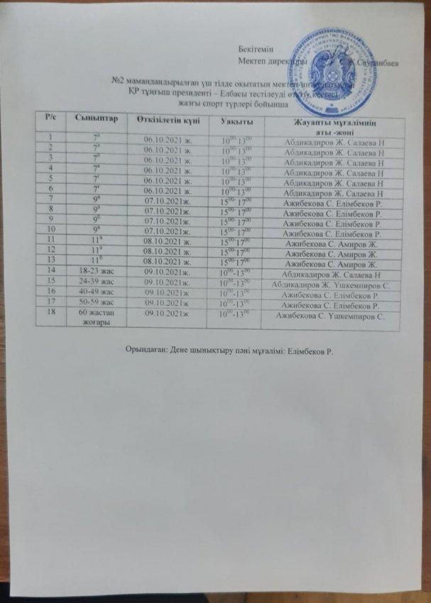 Президенттік тест алынды